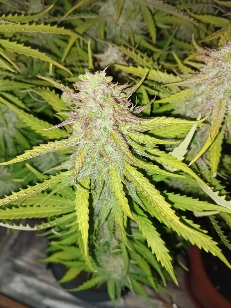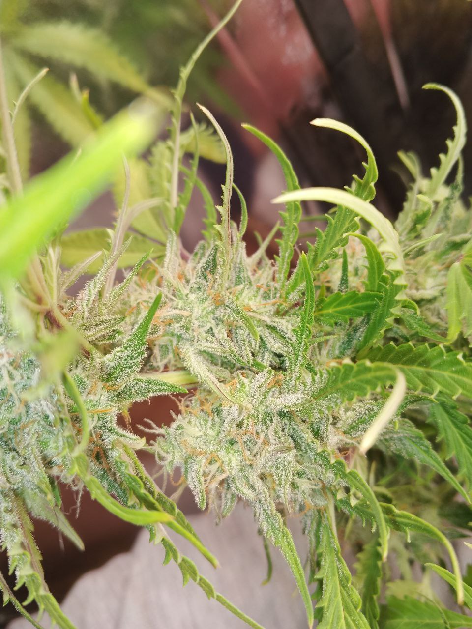 Очень живучий, пережил случайный топинг, очень разветился. Хорошо поддается ЛСТ. Шишки очень сахарные, просто лучшая генетика.