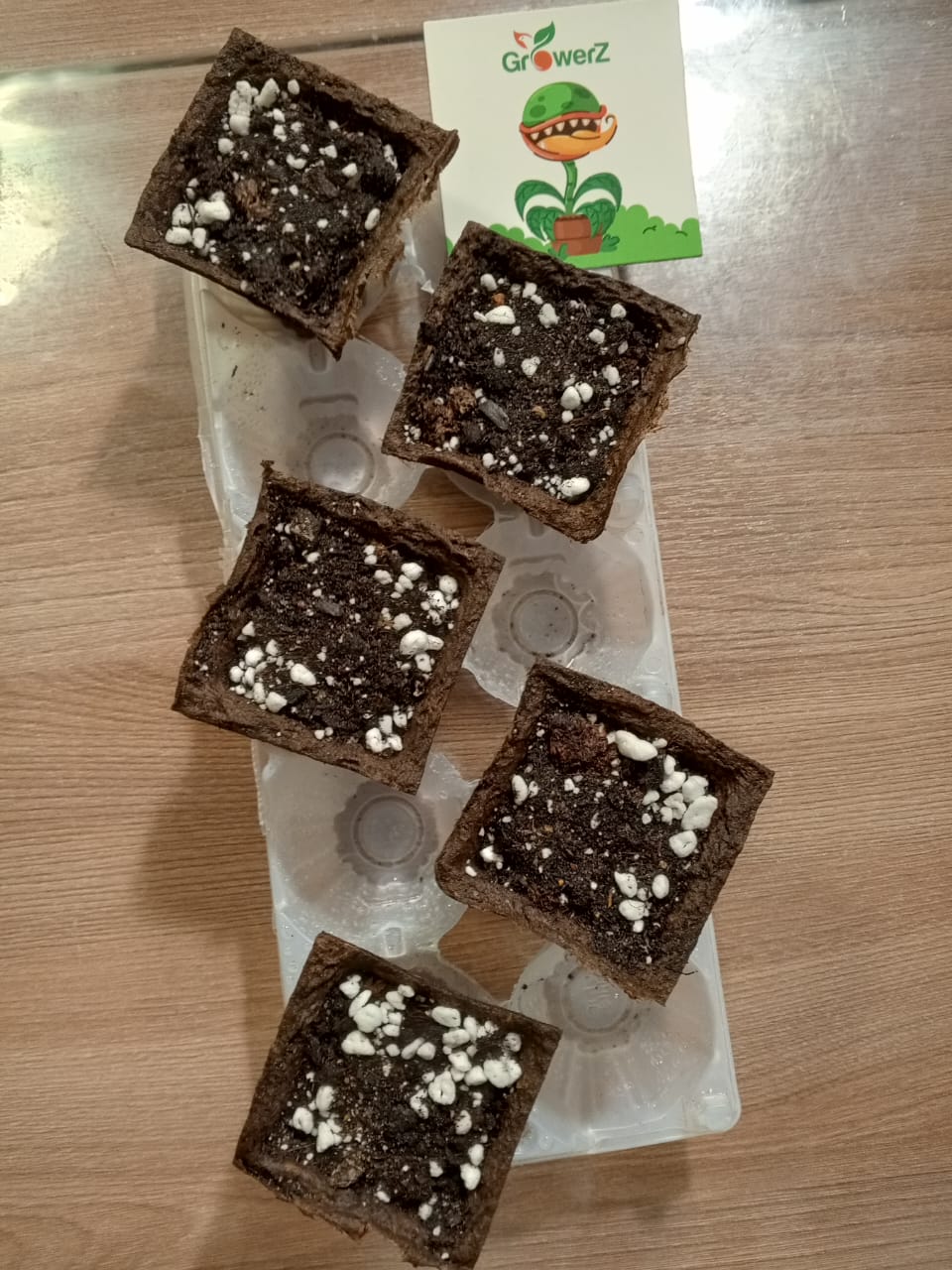 Замочил семена в растворе. Состав раствора (50 мл чистой питьевой воды и 10 капель 3%-й перекиси водорода) Первые корешки начали появляться менее чем через сутки. Через 48 часов проклюнулись все корешки и семена стали готовы для высадки в грунт. Подготовил горшочки для рассады и грунт - Грунт для лимона и Перлит 50х50 %. Проверим всхожесть.