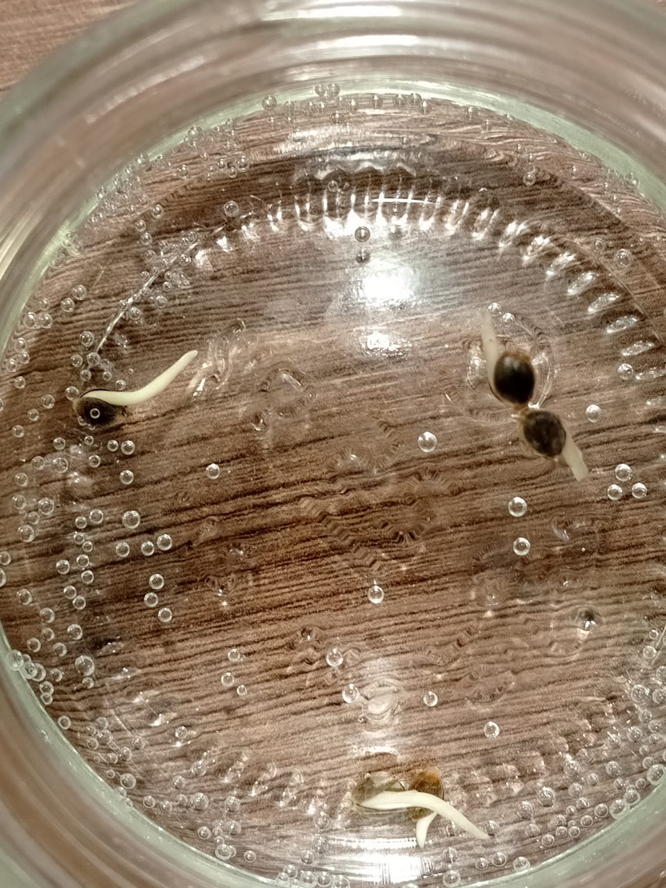 Замочил семена в растворе. Состав раствора (50 мл чистой питьевой воды и 10 капель 3%-й перекиси водорода) Первые корешки начали появляться менее чем через сутки. Через 48 часов проклюнулись все корешки и семена стали готовы для высадки в грунт. Подготовил торфяные горшочки для рассады и грунт - Грунт для лимона и Перлит 50х50 %. Проверим всхожесть. Первые ростки появились на вторые сутки. Через трое суток взошли все семена, 100%-ая всхожесть. Такое в моей практике, первый раз.