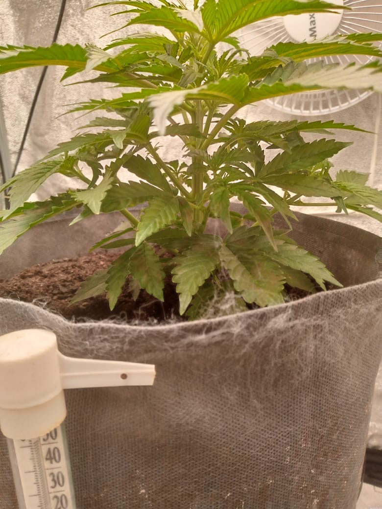 Решил поднять этот сорт, потому , что это была единственная семечка у меня в наличии. Терять время в ожидании заказа проверенных семян яне хотел, поэтому сразу приступил к проращиванию. Сегодня ей месяц: ест удобрения как не в себя и это очень радует. Лью каждые 2 суток на пролив и замеряю выход. Признаков предцвета пока нет, но и торопиться некуда. Судя по видео из ютуба должен получиться хороший куст. Использую землю «крепыш», удобрения Advanced, квантумборд на 120вт, гроубэг 10л, вдув, обдув и все дела. По харвесту сделаю еще репорт.
